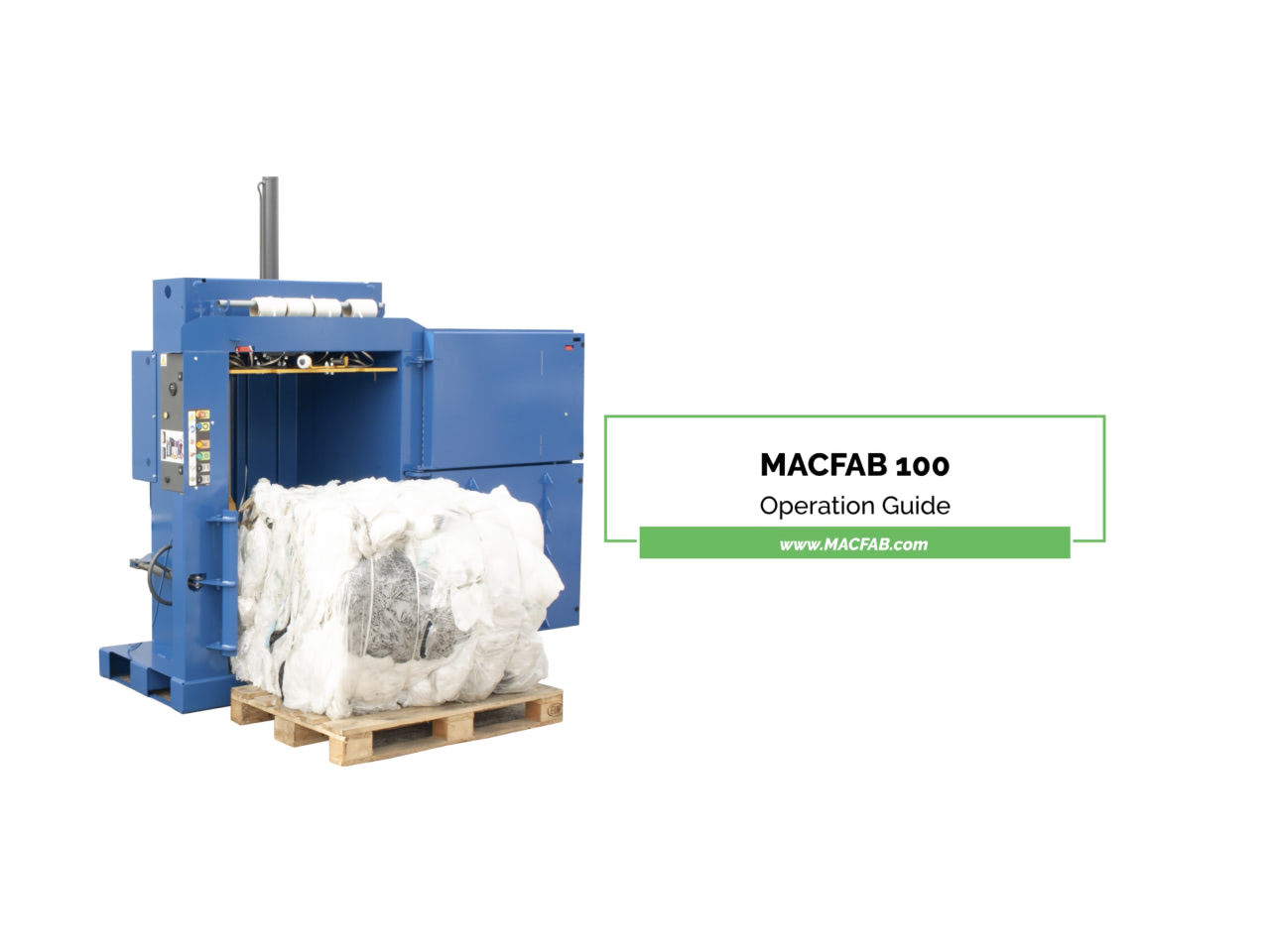 The PB100 baler makes a cardboard bale of 100 kg and a plastic film bale of up to 100 kg. The PB100 can make 2-4 bales per hour depending on the material and site conditions. The bales are normally tied off with plastic strapping/bale and the baler holds 4 rolls of strapping above the door for easy access.