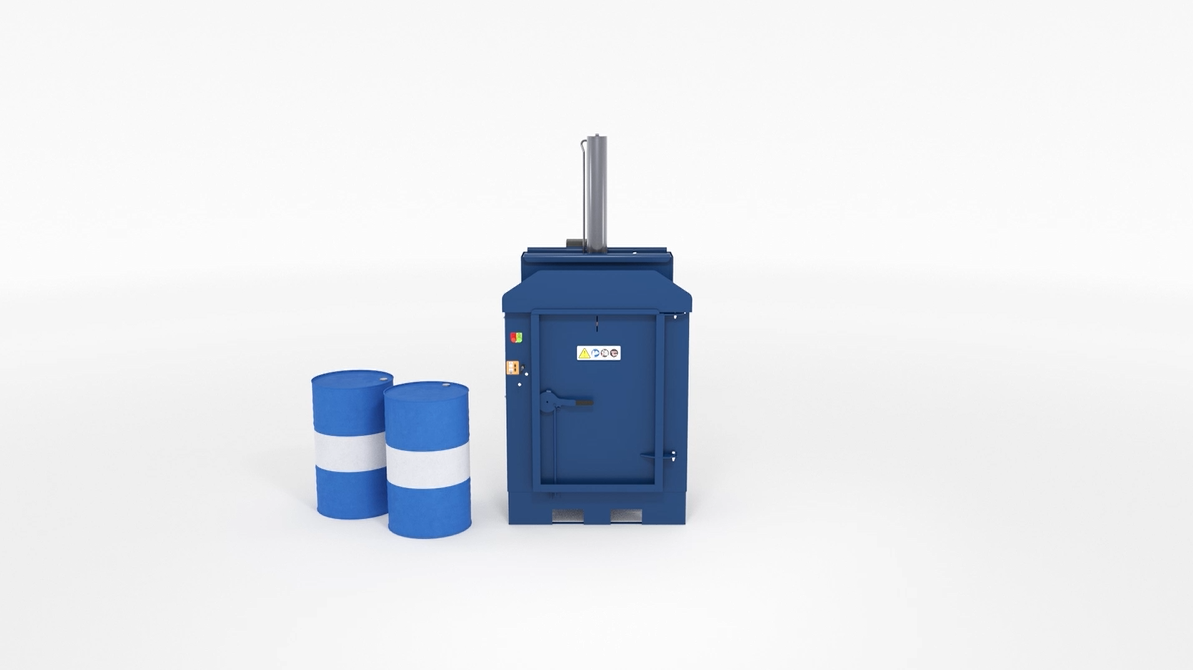 - Available with Smaller bale head to compact inside a 200 Lt steel drum.
