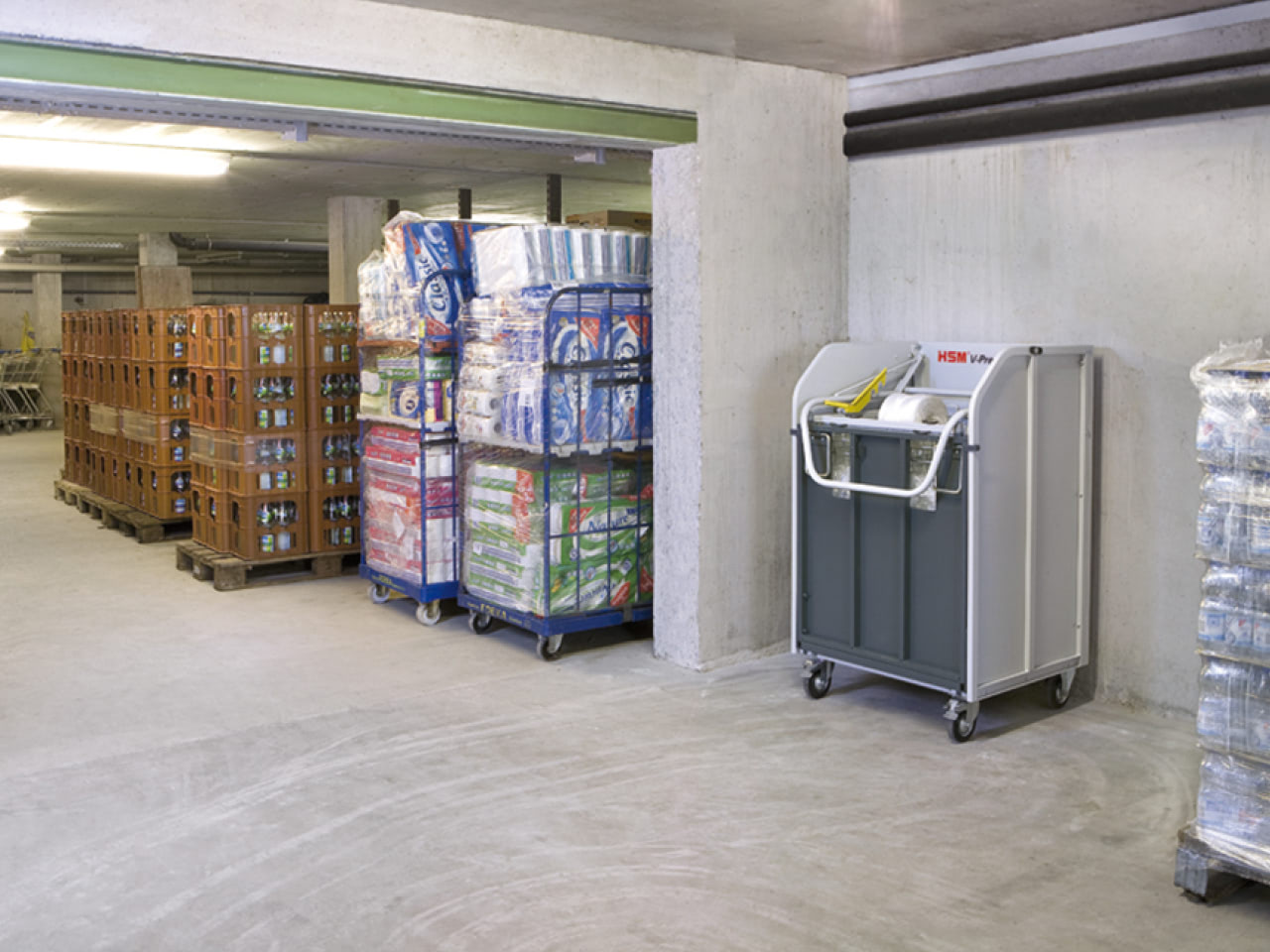 - Move the HSM V-Press 60 to where the waste is produced. It fits through every door and in every lift